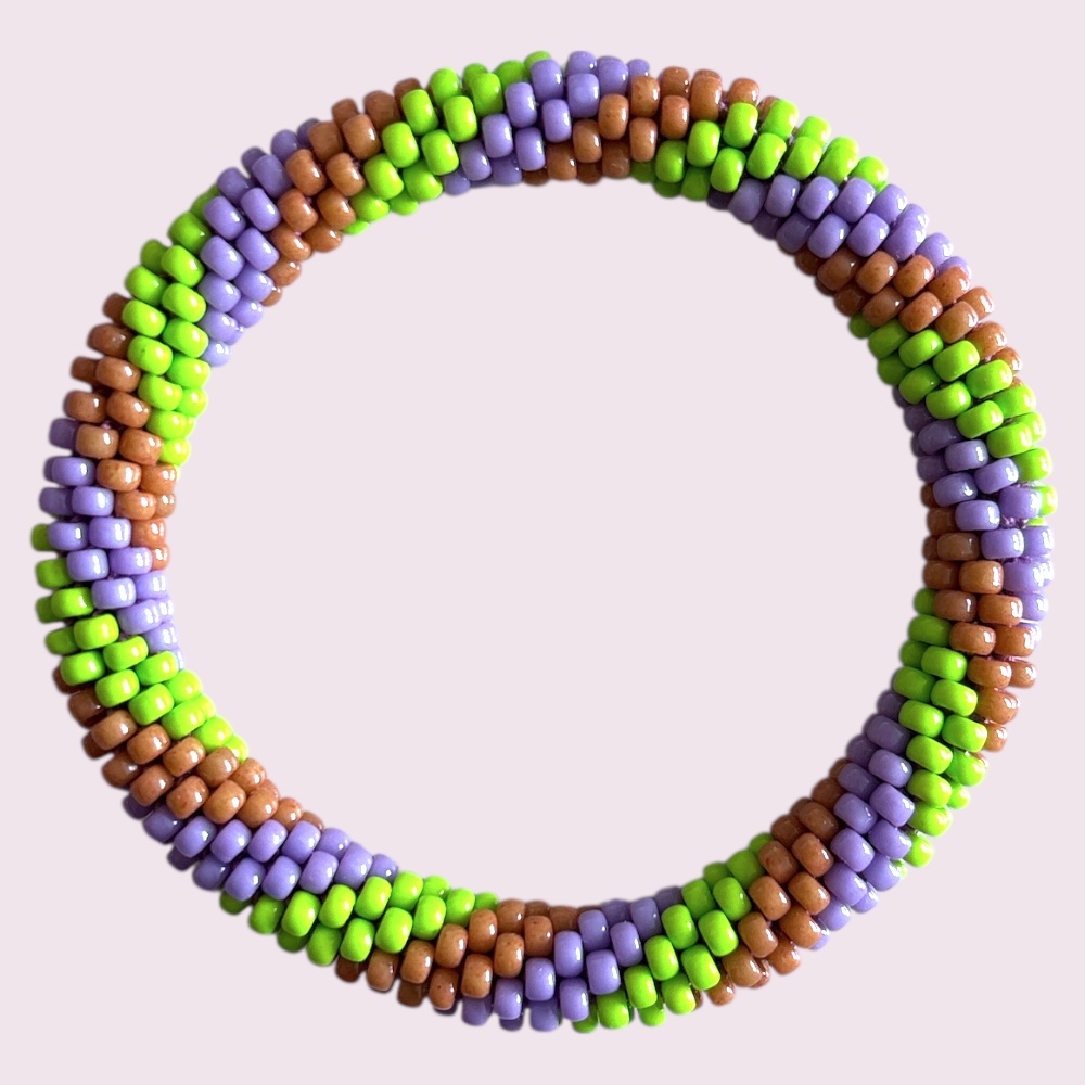 De armband past om vrijwel iedere pols omdat hij gemakkelijk over je hand rolt.